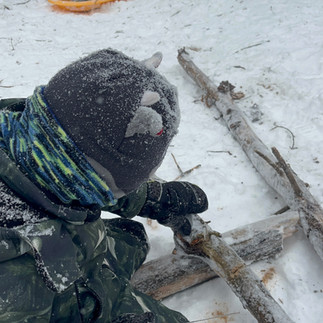 Since it is the first time we have used our new space, we looked to the children to help us build signs, expand on our mud kitchen, and gather a stash of wood for a fire. They took the challenge very seriously and worked hard everyday.